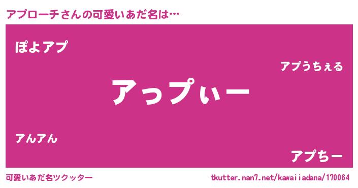 | 男性向けラノベタイトル風あだ名 | 『アプローチの嫁は女の子じゃないと思った?』 |