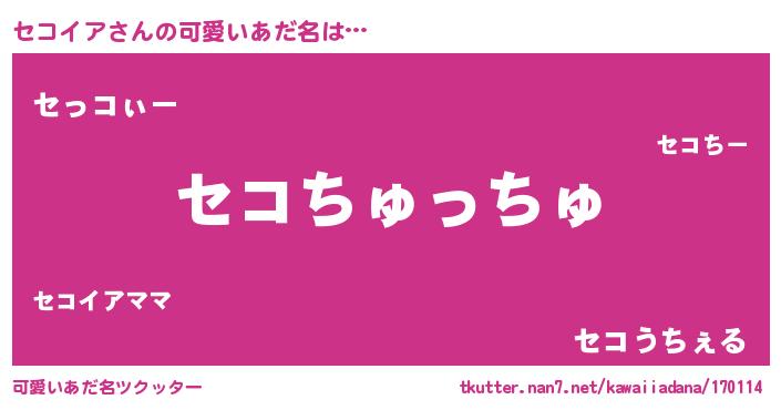 | 女子向けラノベタイトル風あだ名 | 『セコイア恋絵巻』『セコイア様がみてる』 |