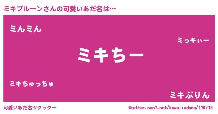 | 意味不明あだ名 | 『ミキプルーンフォーエバー』 |