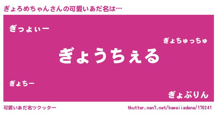 | 女子向けラノベタイトル風あだ名 | 『ぎょろめちゃんストレイドッグス』 |
