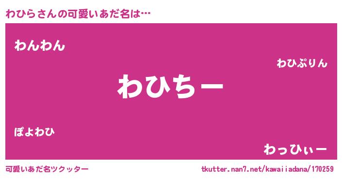 | ヘコむあだ名 | 『豆乳』『わひにゅー』『わひっぺ』 |