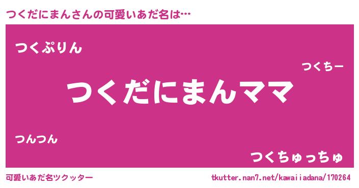 | 男性向けラノベタイトル風あだ名 | 『つくだにまんという概念が存在しない退屈な世界 』 |