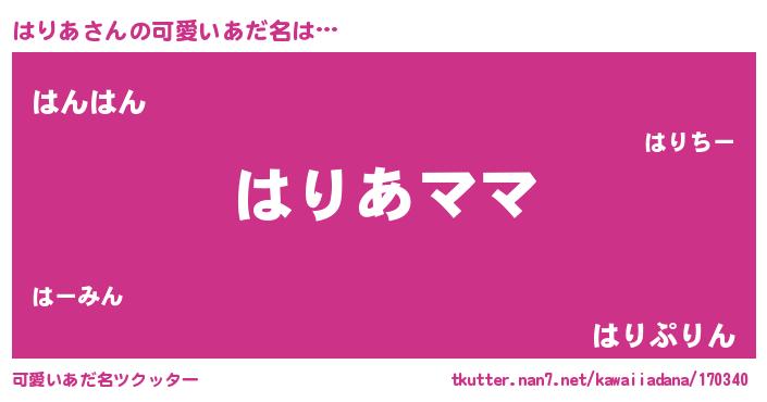| 意味不明あだ名 | 『永久保存はりあ』『ペロリンはりあ』 |
