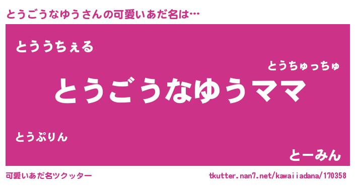 | ヘコむあだ名 | 『とうごうなゆう(笑)』『とうふぇ~』 |