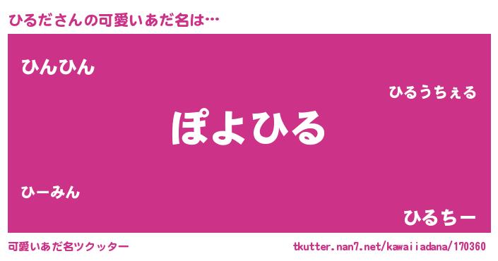 | 恥ずかしいあだ名 | 『プリティーひるだ』『ひるっちょ』 |
