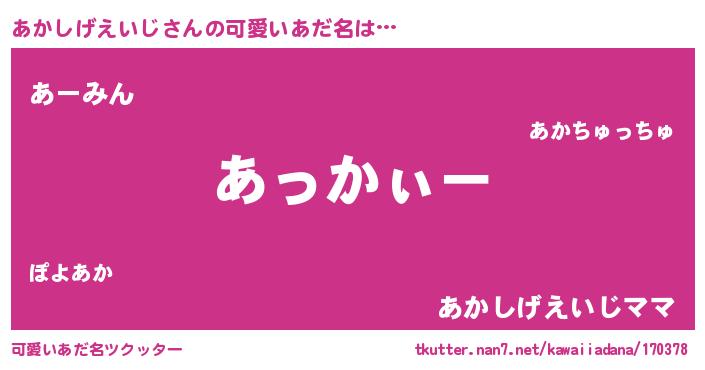 | 女子向けラノベタイトル風あだ名 | 『あかしげえいじの卵を拾いまして』 |