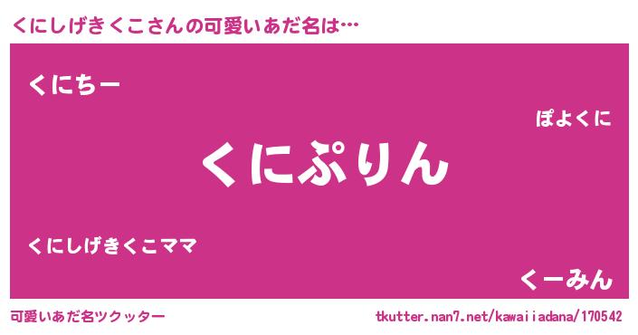 | 男性向けラノベタイトル風あだ名 | 『くにしげきくこ~年齢イコール彼女いない歴の魔法使い~』 |