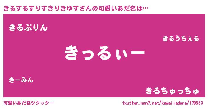 | 萌えアニメ | 主人公(きるするすりすきりきゆす)のあだ名『 きるてゅん』 |
