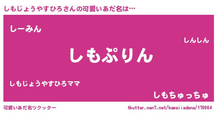 | 女子向けラノベタイトル風あだ名 | 『しもじょうやすひろの玉の輿計画!』 |