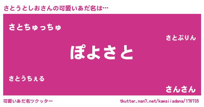 | ヒーロー風カッコイイあだ名 | 『仮面サトダー』『スーパーサトウトシオ』 |