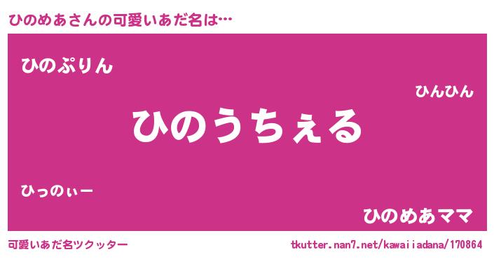 | 意味不明あだ名 | 『自称ひのめあ』『ヨモギ科ひのめあ属』 |