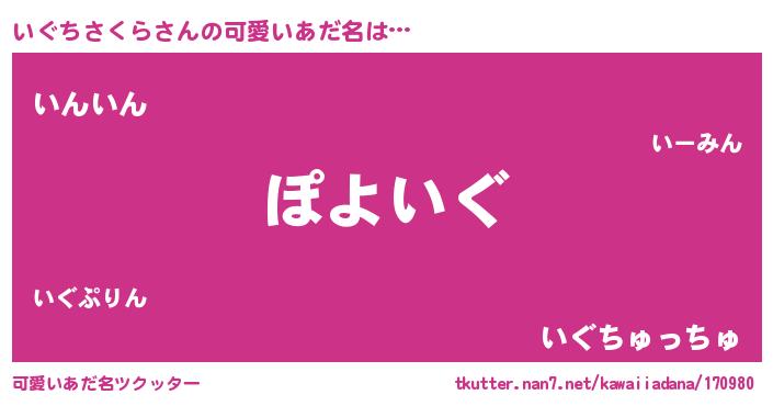 | ヘコむあだ名 | 『いぐにー』『いぐちさくら(小並感)』 |