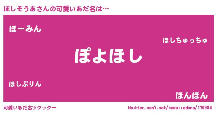 | ポケモン風あだ名 | 『ホシゴンZ』『ホーシイ』 |