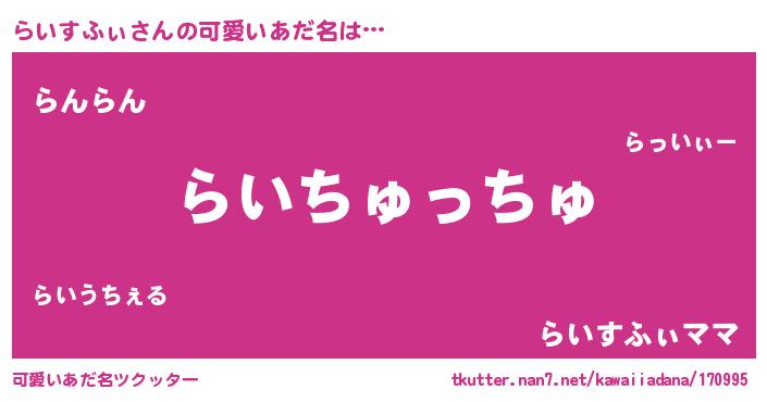 | ヒーロー風カッコイイあだ名 | 『正義の使者らいすふぃ』『暗黒騎士ライ』 |