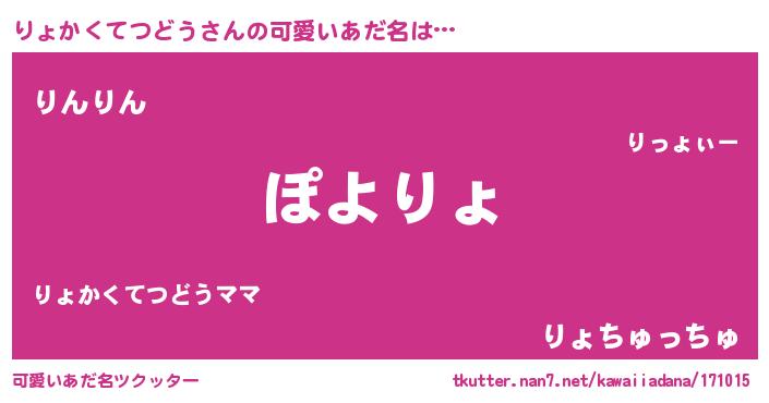 | 料理風あだ名 | 『りょかくてつどうのカルパッチョ風』 |