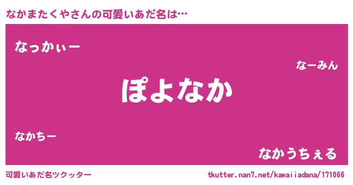 | ヘコむあだ名 | 『なかを』『豆乳』『なかにゅー』 |