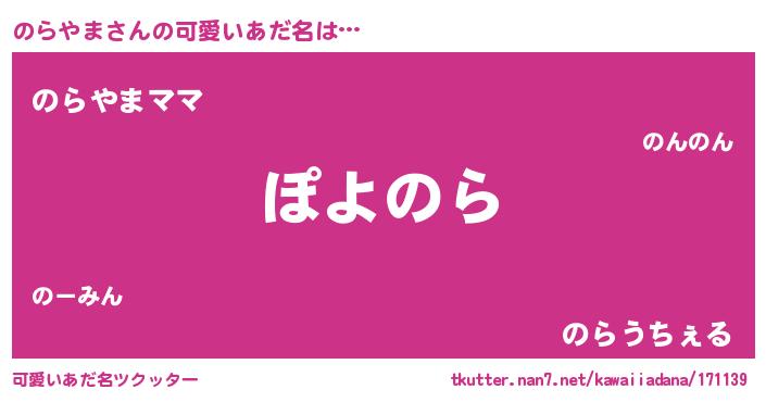 | 男性向けラノベタイトル風あだ名 | 『この素晴らしい世界にのらやまを!』 |