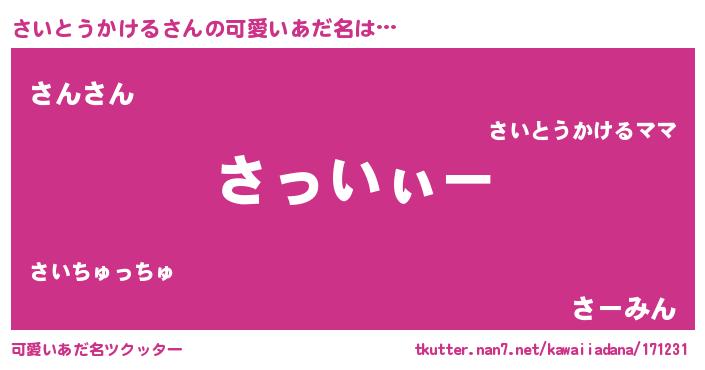 | 意味不明あだ名 | 『とにかく怪しいさいとうかける』 |