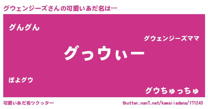 | 意味不明あだ名 | 『とにかく怪しいグウェンジーズ』 |