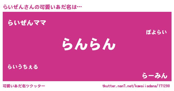 | 意味不明あだ名 | 『ペロリンらいぜん』『永久保存らいぜん』 |