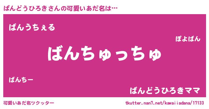 | ヘコむあだ名 | 『ばんどうひろき(苦笑)』『なまこ酢』 |