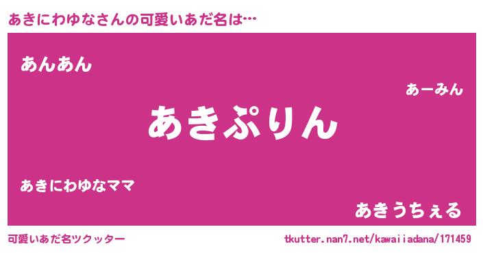 | ヘコむあだ名 | 『あきにゅー』『あきにわゆな(震え声)』 |