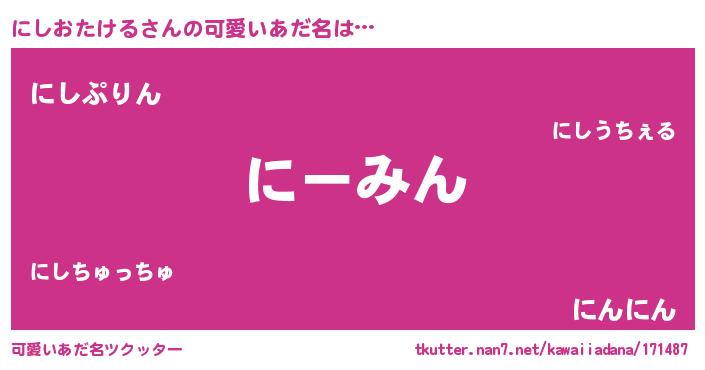 | ヘコむあだ名 | 『にしにー』『にしおたける(小並感)』 |