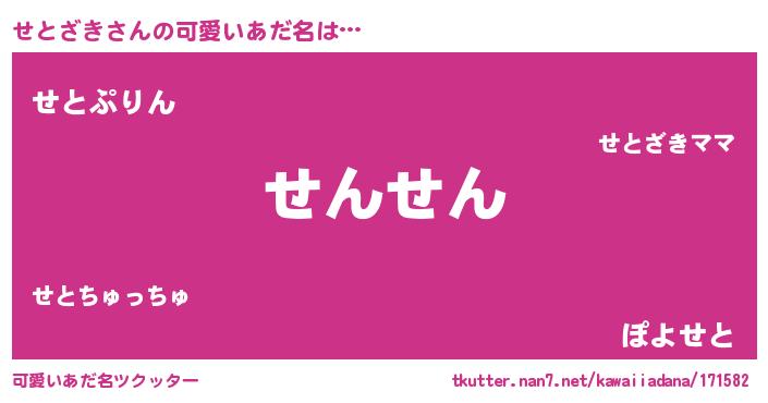 | 男性向けラノベタイトル風あだ名 | 『せとざきの憂鬱』『セトザキスレイヤー』 |