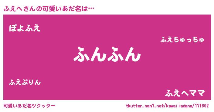 | ヘコむあだ名 | 『ふえにゅー』『ふえへ(遠い目)』 |