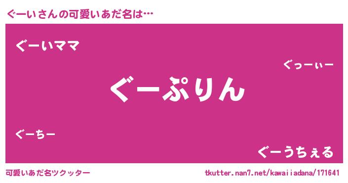 | 意味不明あだ名 | 『もやし科ぐーい属』『永久保存ぐーい』 |