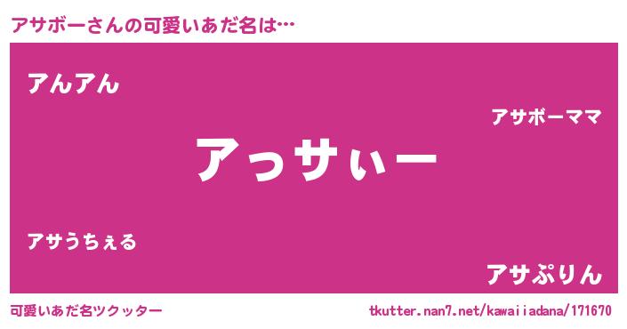 | ポケモン風あだ名 | 『ヒアサボー』『アサチュウ』 |