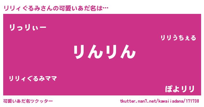 | 意味不明あだ名 | 『ペロリンリリィぐるみ』 |