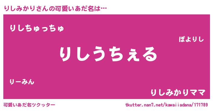 | 意味不明あだ名 | 『自称りしみかり』『永久保存りしみかり』 |