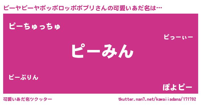 | 男性向けラノベタイトル風あだ名 | 『うちのピーヤピーヤポッポロッポポプリが世界を掌握している!』 |