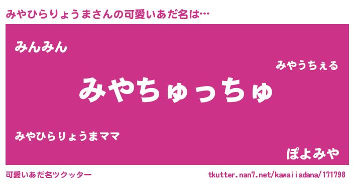 | ヘコむあだ名 | 『みやにー』『みやひらりょうま(苦笑)』 |