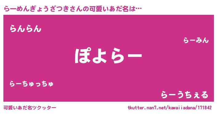 | 男性向けラノベタイトル風あだ名 | 『この素晴らしい世界にらーめんぎょうざつきを!』 |