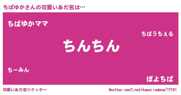 | 意味不明あだ名 | 『ペロリンちばゆか』『永久保存ちばゆか』 |