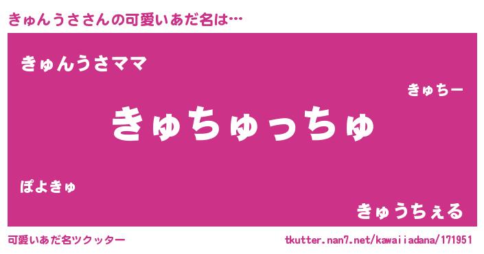 | ヒーロー風カッコイイあだ名 | 『慈愛の使者きゅんうさ』『仮面キュダー』 |