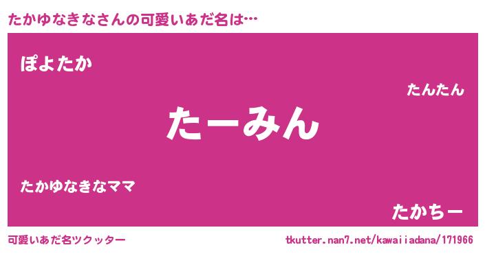 | 恥ずかしいあだ名 | 『たかっちょ』『プリティーたかゆなきな』 |