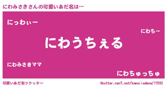 | 意味不明あだ名 | 『自称にわみさき』『永久保存にわみさき』 |