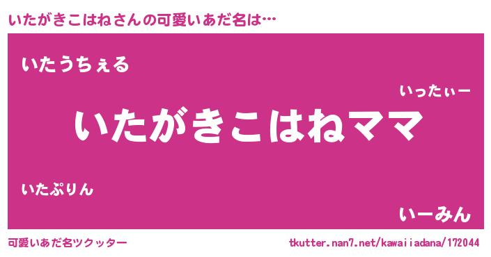 | 男性向けラノベタイトル風あだ名 | 『いたがきこはねに滅ぼされるだけの簡単なお仕事です』 |