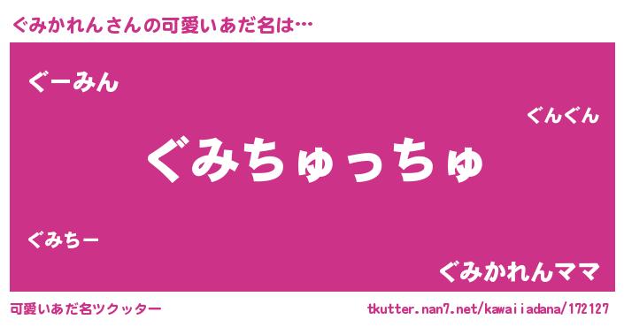 ヘコむあだ名 | 『ぐみかれん(笑)』『ぐみっふぃ~』 |