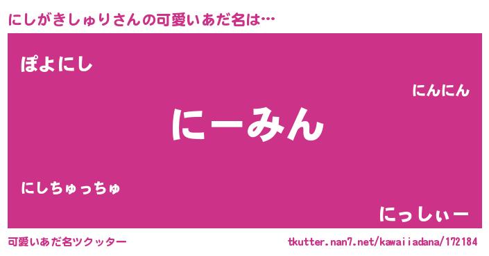 | 意味不明あだ名 | 『住所不定無職にしがきしゅり(1歳)』 |