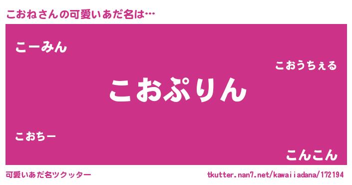 | ヒーロー風カッコイイあだ名 | 『スーパーコオネ』『最強戦士コオネ』 |