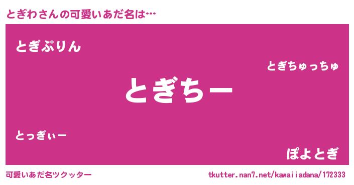 | ポケモン風あだ名 | 『トギワダネ』『トギキング』 |