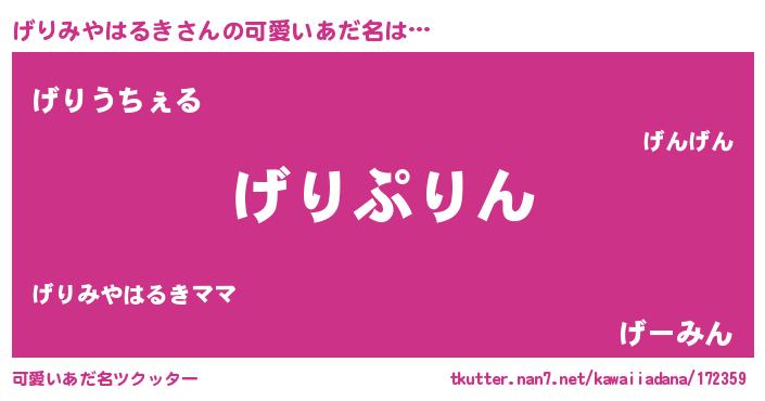 | 男性向けラノベタイトル風あだ名 | 『転生したらげりみやはるきだった件』 |