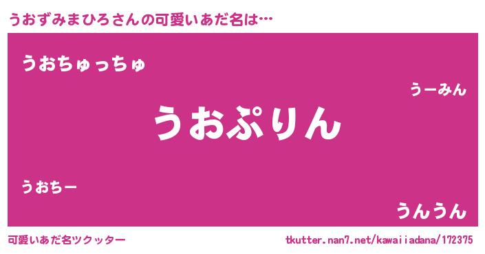 | 男性向けラノベタイトル風あだ名 | 『うおずみまひろ~年齢イコール彼女いない歴の魔法使い~』 |