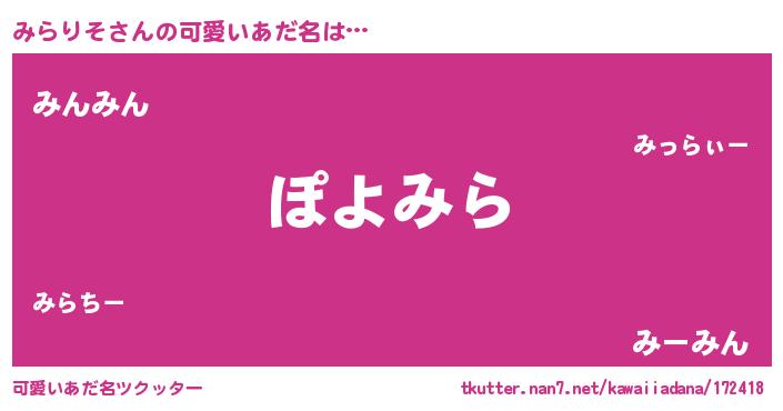 | ポケモン風あだ名 | 『ミーライ』『ミラチュウ』 |