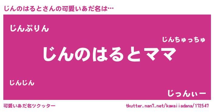 | ヘコむあだ名 | 『じんのはると(遠い目)』『じんっ子』 |