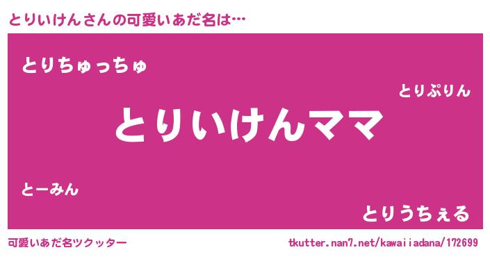 | ヘコむあだ名 | 『とりいけん(苦笑)』『とりっふぃ~』 |